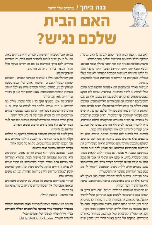 הנגישות שאליה אני מתכוון, היא אפשרות להיכנס לבית שלכם מבלי לעלות או לרדת במדרגות.