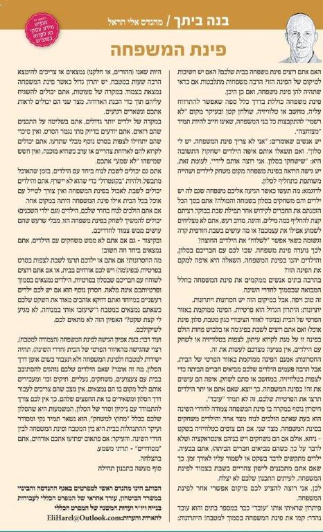 יש אנשים שאומרים:"אני לא צריך פינת המשפחה. יש לי סלון". ואם תשאלו אותם: איפה הילדים ישחקו? התשובה היא:"שישחקו בסלון. אני רוצה אותם לידי".