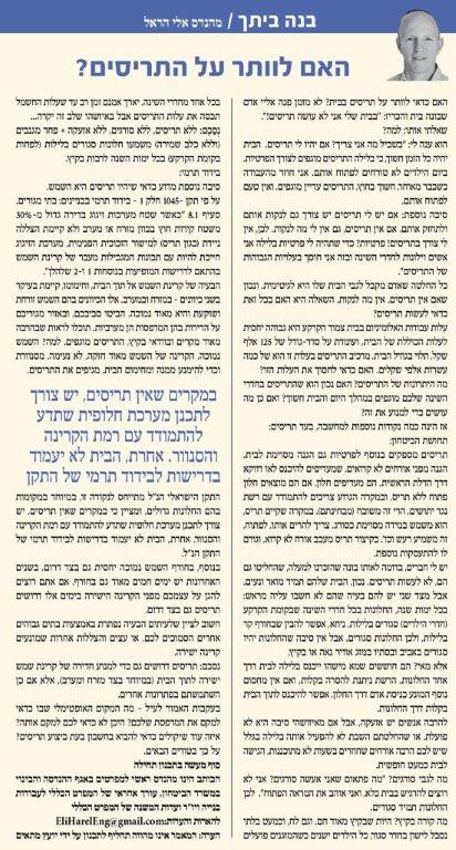 לא מזמן פנה אליי אדם שבונה בית והכריז:"בבית שלי אני לא עושה תריסים!
