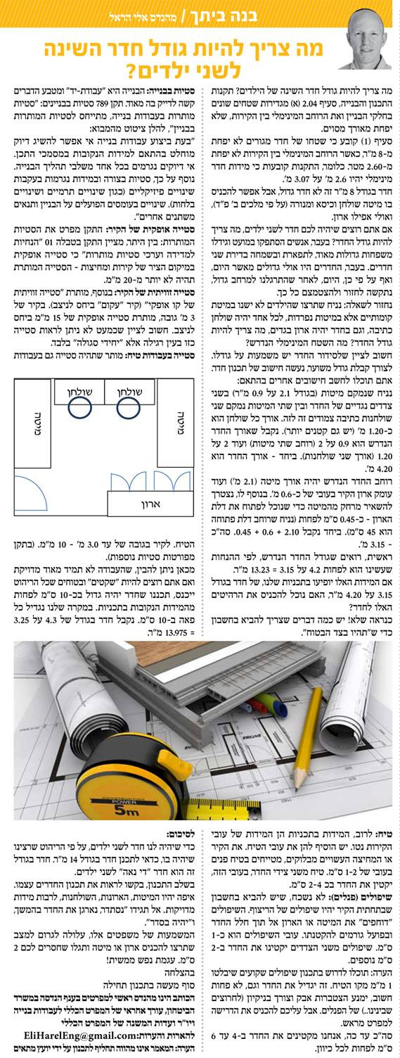 כדי שיהיה לנו חדר לשני ילדים, על פי הריהוט שרצינו שיהיה בו, כדאי לתכנן חדר בגודל 14 מ"ר. חדר בגודל זה הוא חדר "די נאה" לשני ילדים.